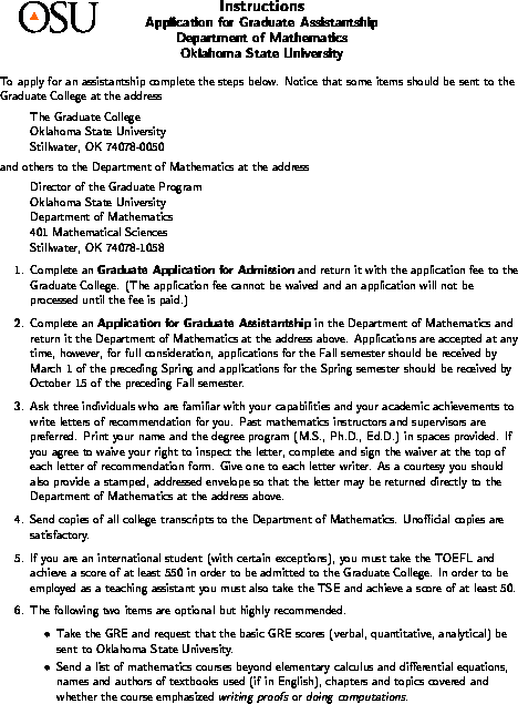 - Click here for general information on graduate study at OSU